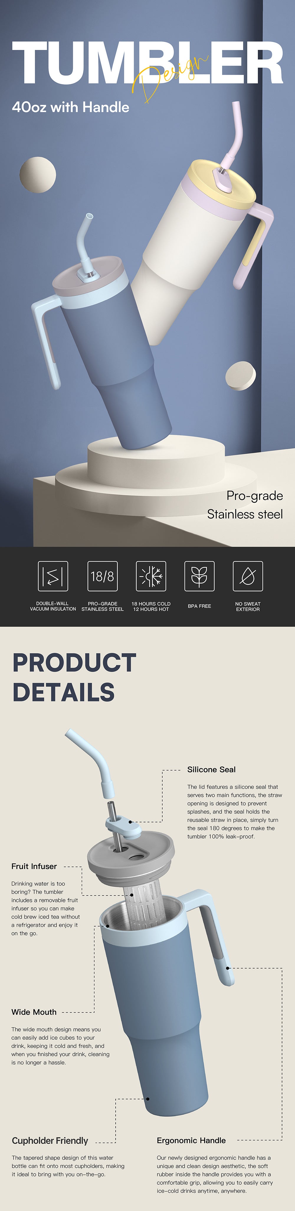 40oz Custom Tumbler with Handle and Tea Infuser - Large Capacity Travel Mug